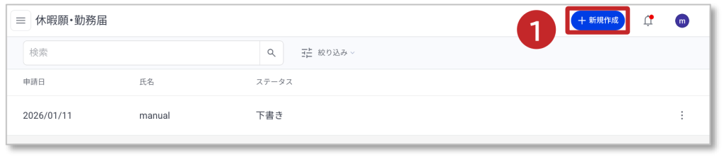 休暇願・勤務届の新規作成方法を説明します。