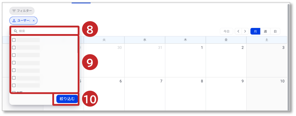 ⑩「絞り込む」をクリックしてユーザーを絞り込みます。