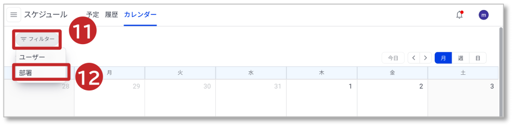 12.「部署」をクリックすると部署の選択プルダウンが表示されます。