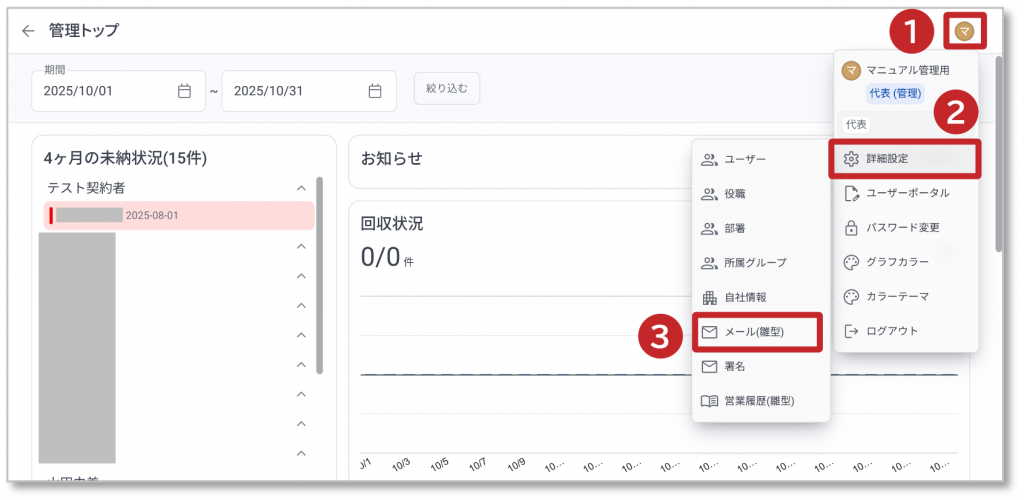 ② 表示されたメニューの「詳細設定」をクリックすると、詳細メニューが表示されます。