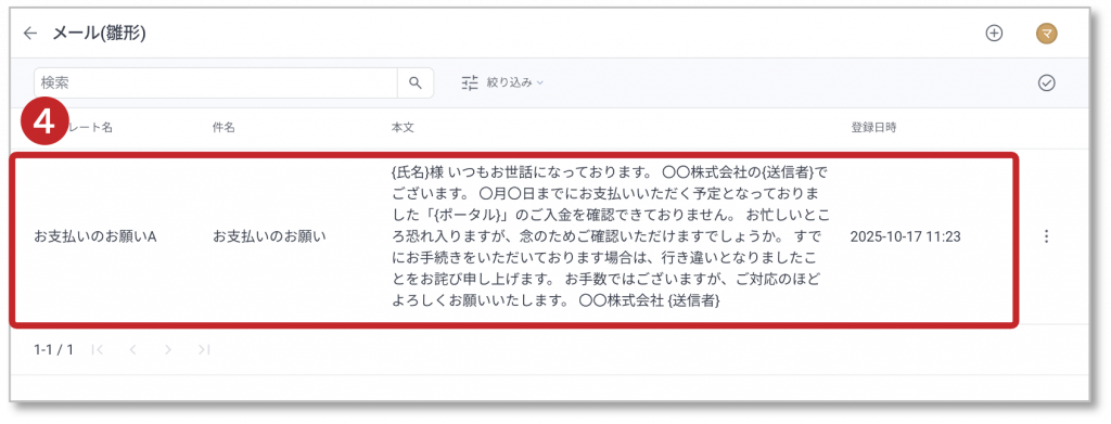メール(雛形)の表示方法を説明します。