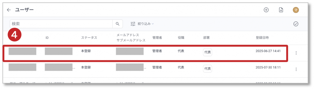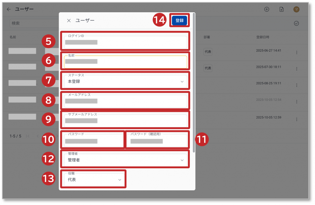 14. 「登録」をクリックすると、編集したユーザー情報が登録されます。